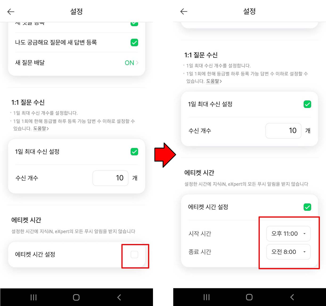 네이버 지식인 엑스퍼트 정해져 있는 시간 외에 알림 받지 않는 방법