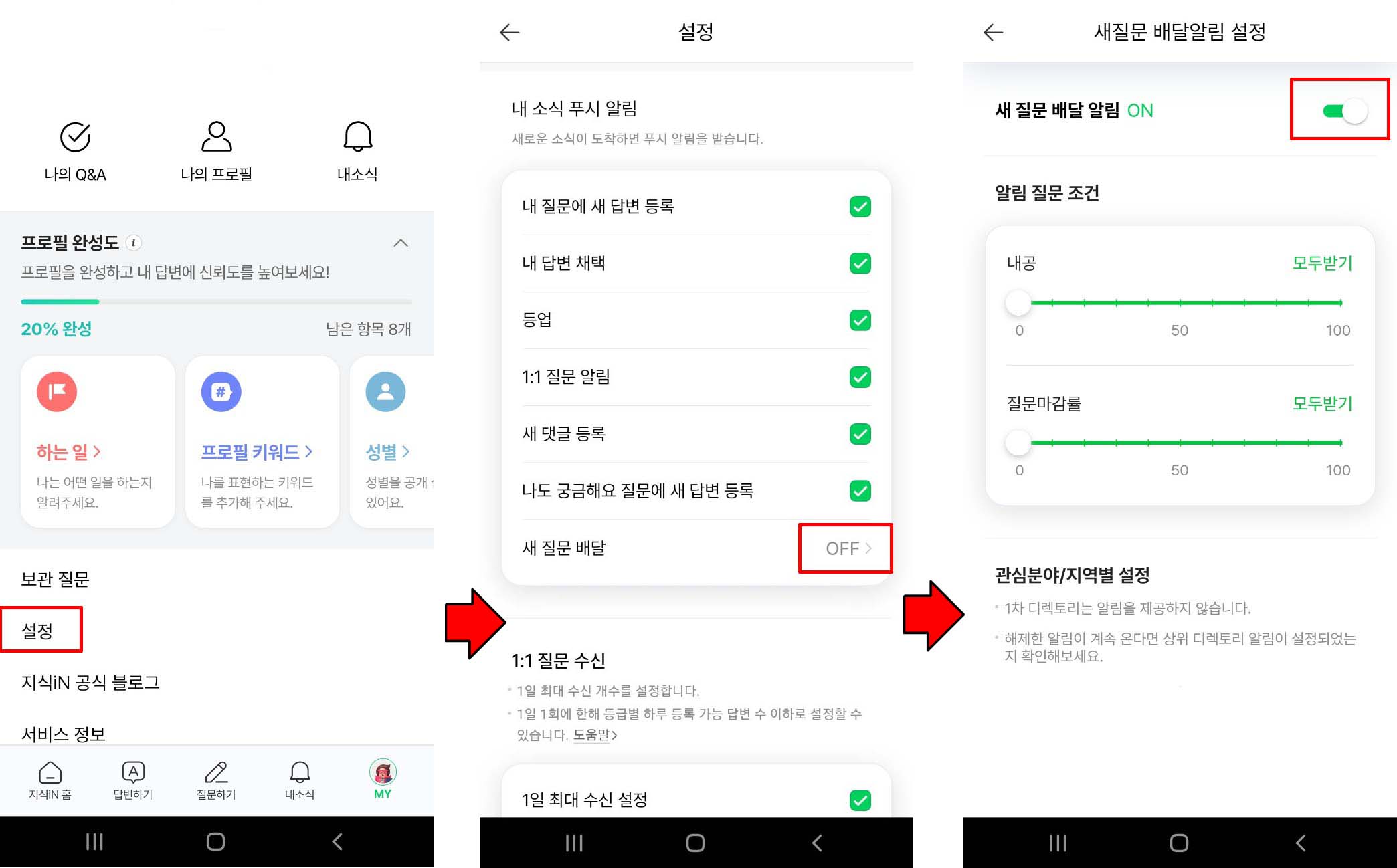 네이버 지식in, 엑스퍼트 앱에서 키워드 알림설정하기