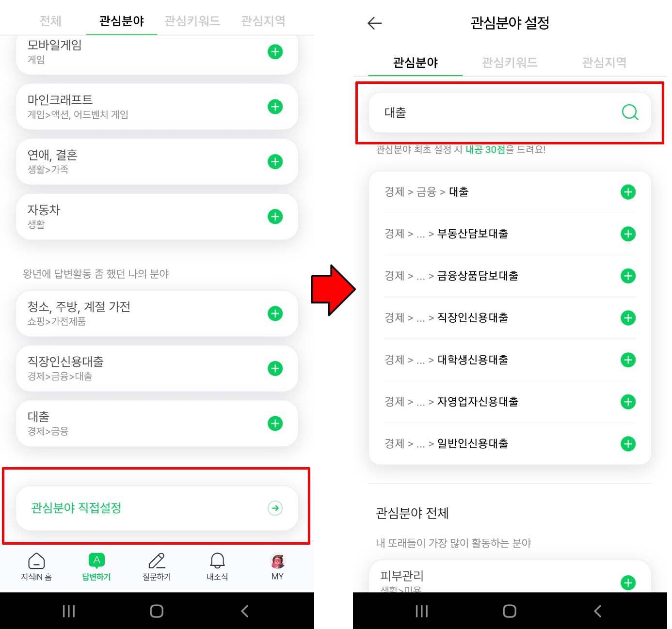 네이버 지식인 엑스퍼트 관심키워드 외에 관심분야로 알림 받기
