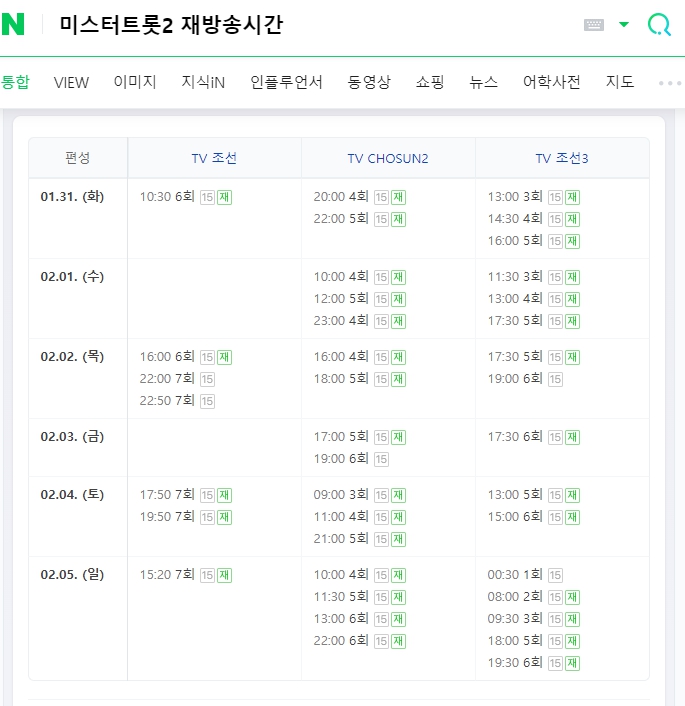 미스터트롯2 재방송시간을 확인해서