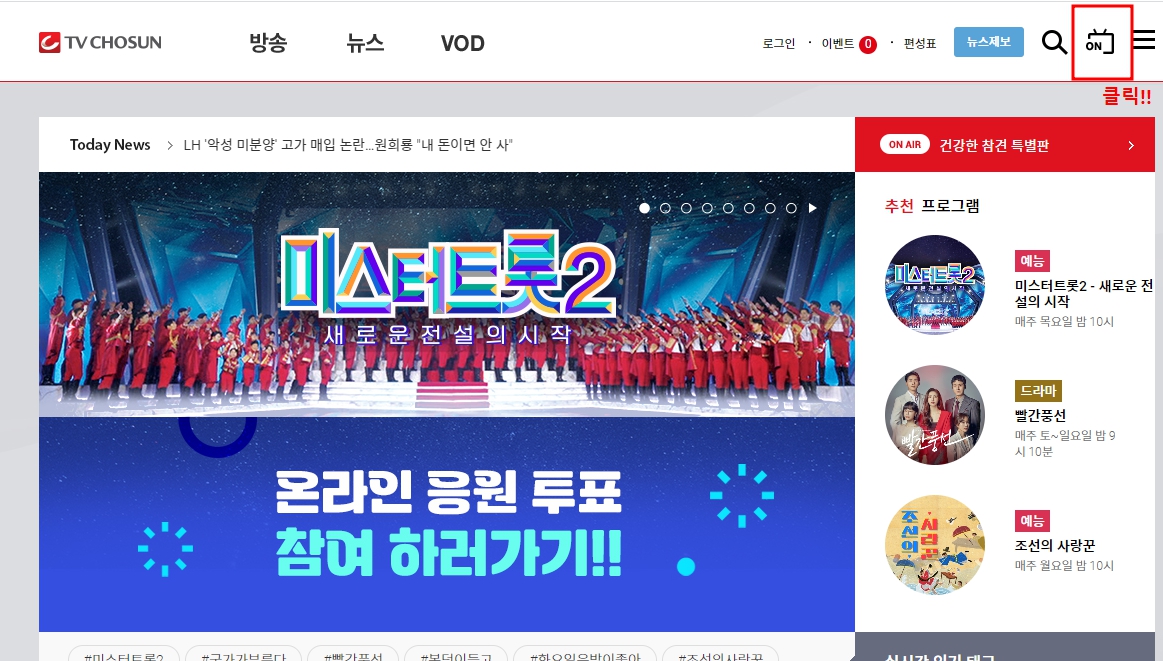 편의를 위해서 TV 조선 온에어 홈페이지 링크를 걸어둘게요.
