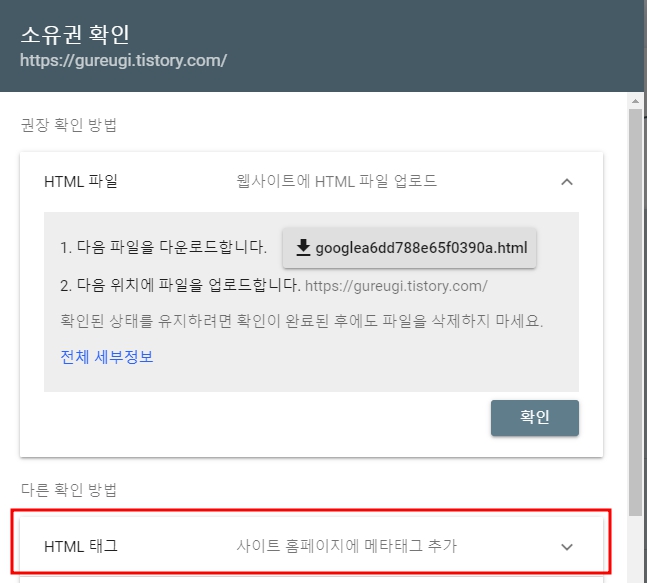 로그인하면 구글 서치 콘솔에서 이미 인증이 되어 있을 경우
