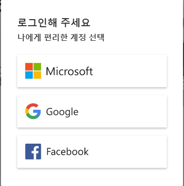 시작하기를 누르시면 편한 방식의 로그인을 원하네요