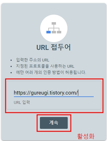 URL을 입력해 주면 아래와 같이 계속버튼이