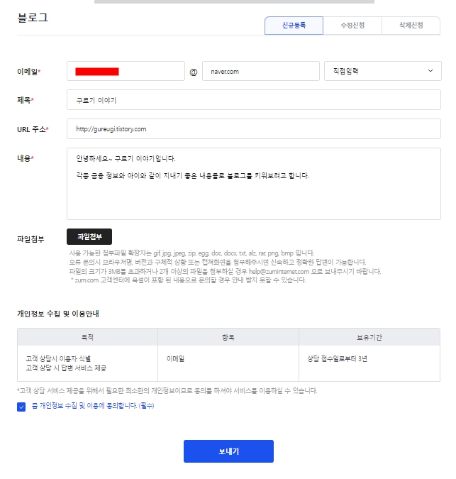 다) 줌 사이트에 블로그를 등록합니다.
