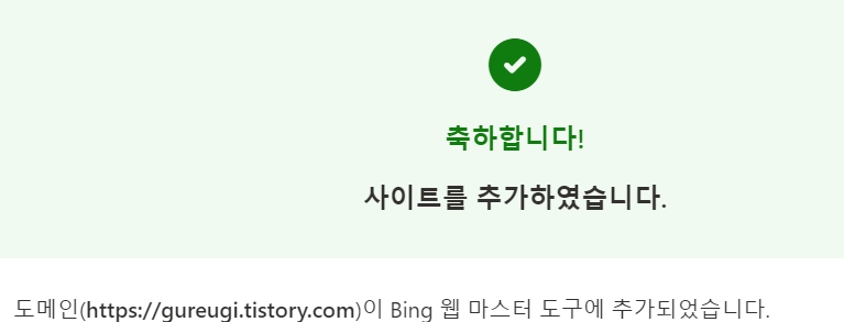 사이트가 추가되었다는 메시지를 보실 수 있습니다.