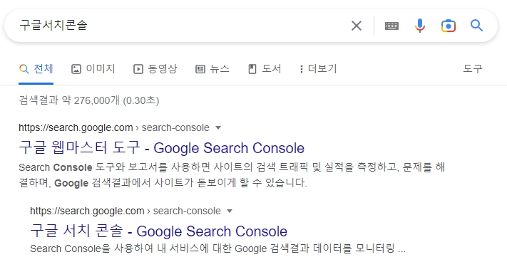 구글 웹마스터 도구 또는 구글 서치 콘솔이라고 나옵니다.
