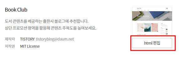 오른쪽 상단에 html편집 메뉴를 클릭합니다.