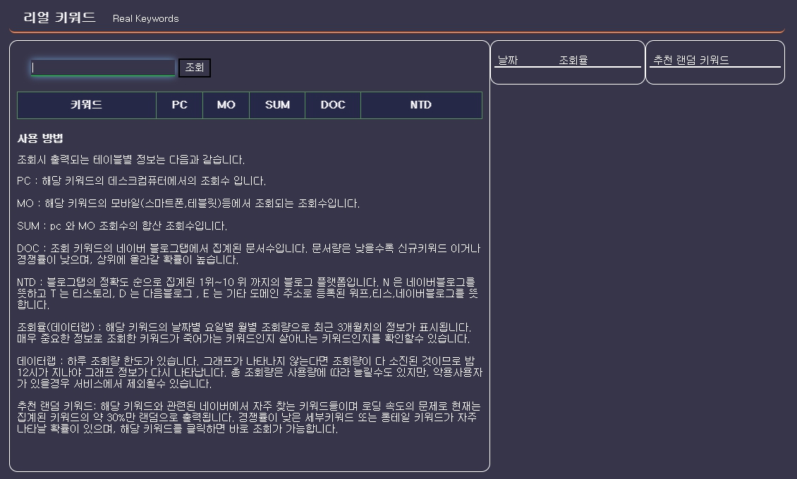 이를 확인하기 위해서 리얼키워드(http://realkeyword.co.kr/)를 사용해 보겠습니다.