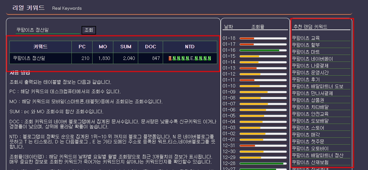 보시면 쿠팡이츠 정산일에 대한 검색량은 그렇게 많지는 않지만,